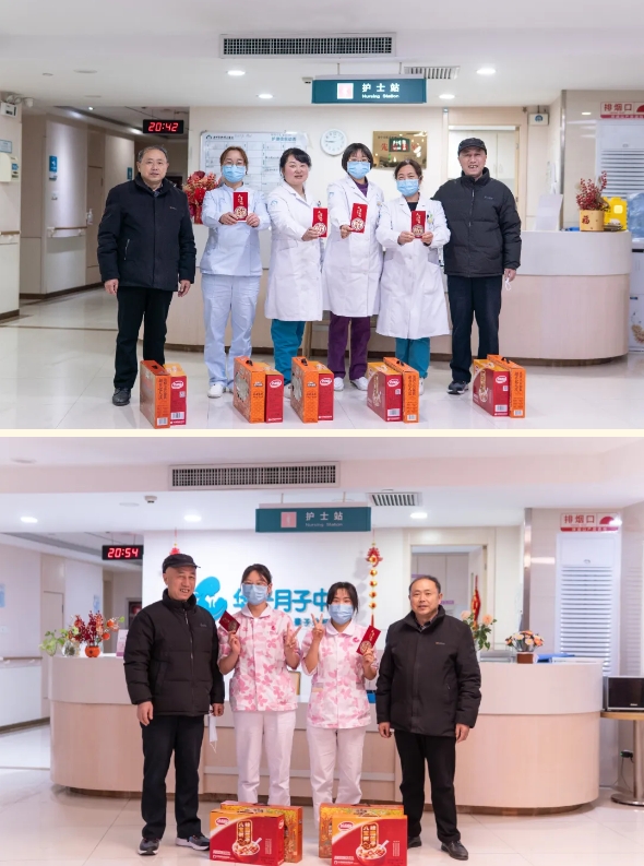 1月28日,除夕晚上,王彦伟院长、党支部副书记文建勇对我院除夕值班坚守岗位的工作人员进行了亲切的慰问。期间走访了医院的门诊、住院部、月子中心以及各个窗口科室,向春节期间依然坚守在一线的医护人员和职工表达了最真挚的节日祝福,并为他们送上了节日大礼包和慰问金。