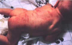 尿布红斑:在新生儿的肛门附近,臀部会阴部等处皮肤发红。