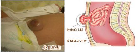 由于宝宝脐环发育关闭不全或薄弱,腹腔脏器由脐环处向外突出到皮下。