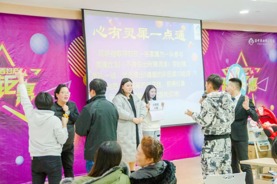 现场的孕妈和家属分组进行“你比划我来猜”的默契挑战,各种滑稽的比划动作引得现场一阵阵爆笑!