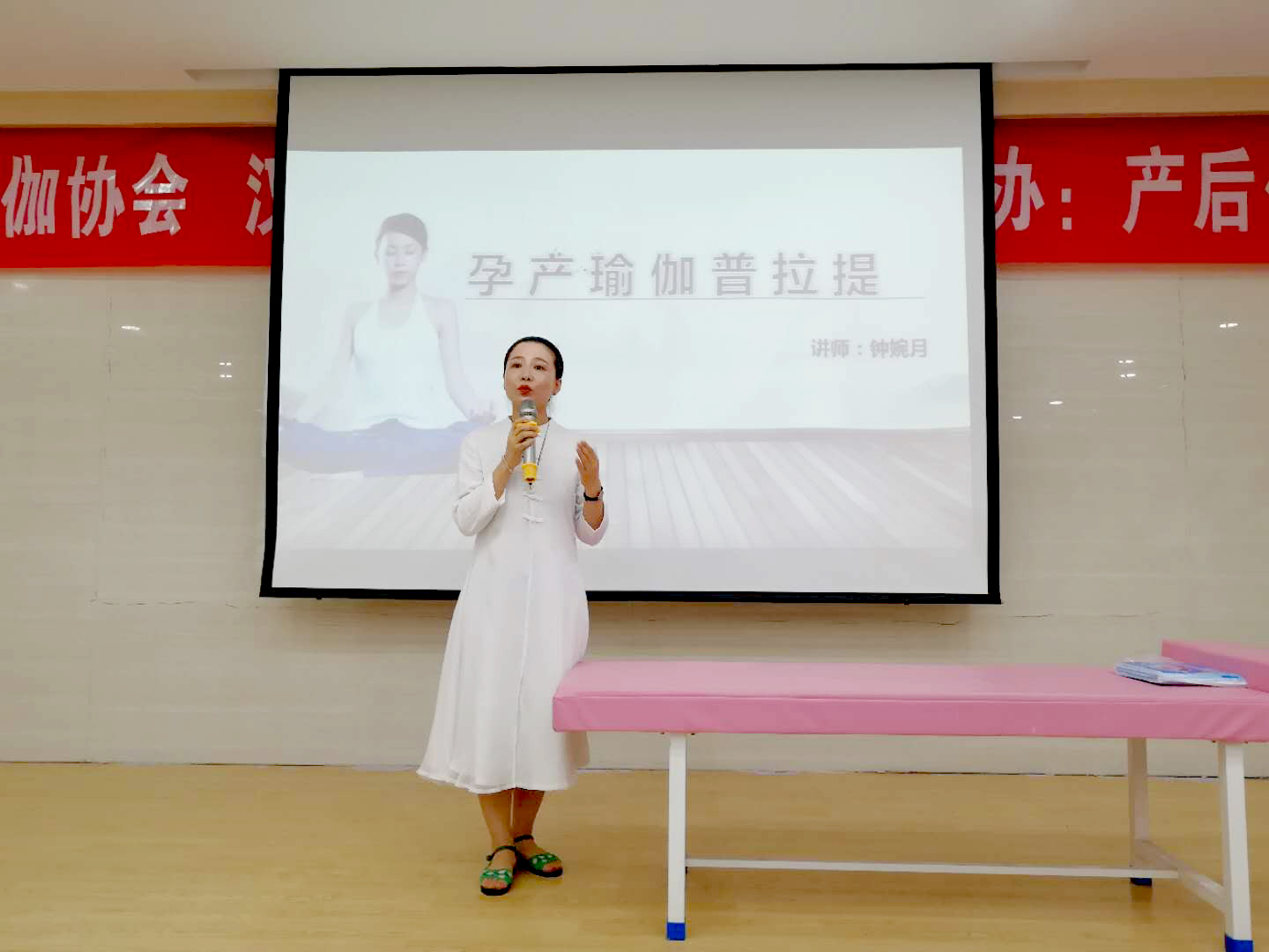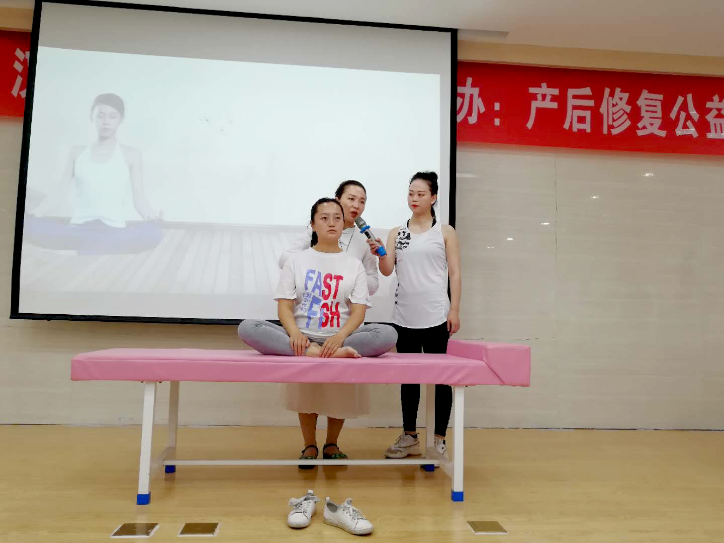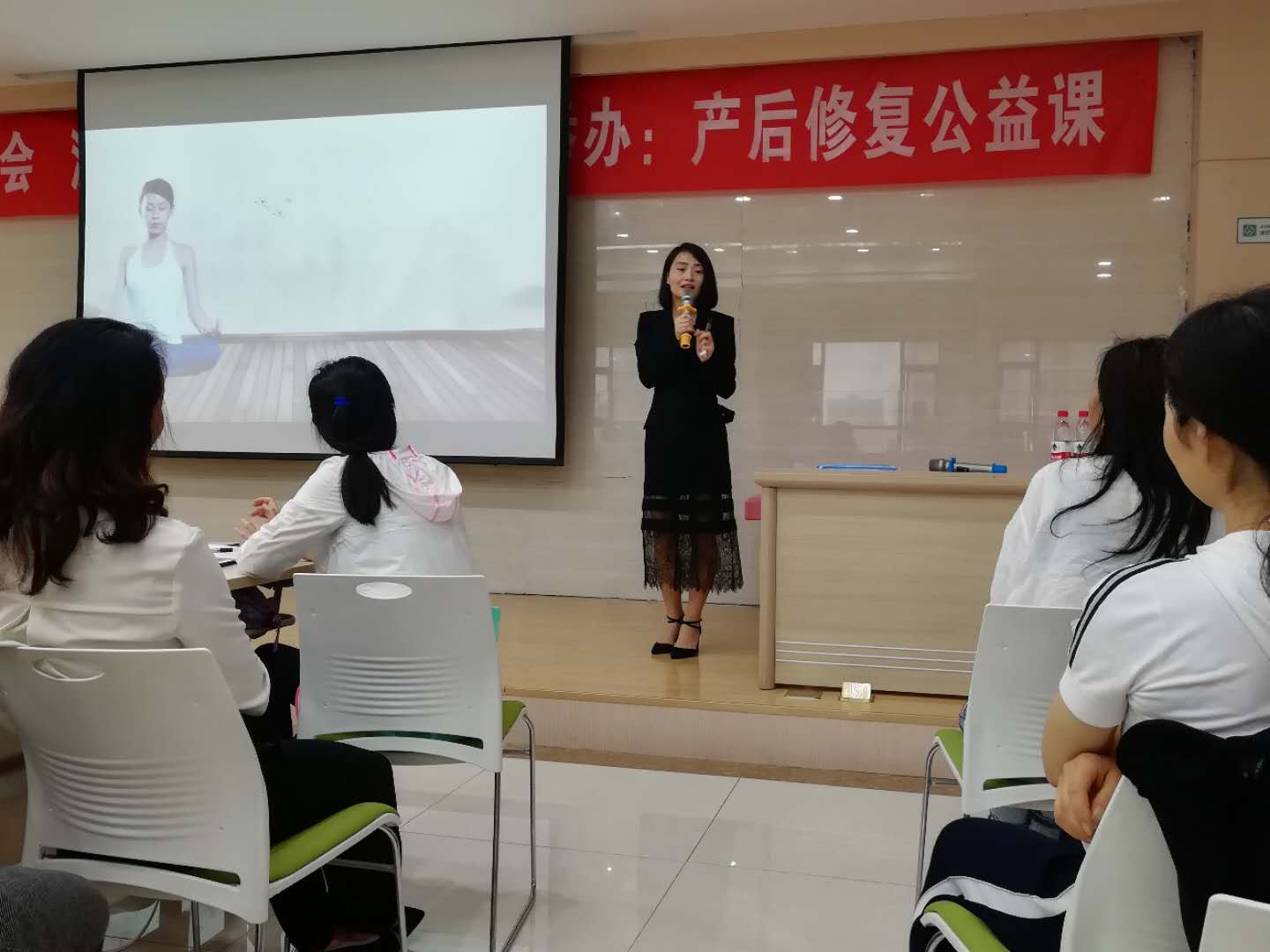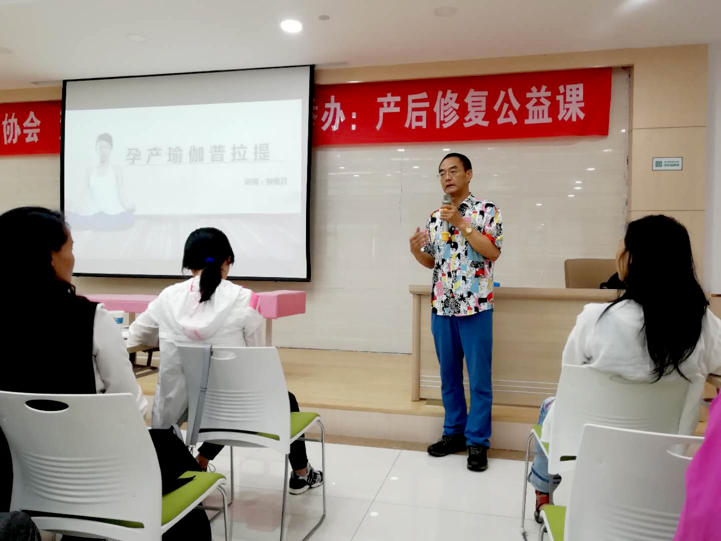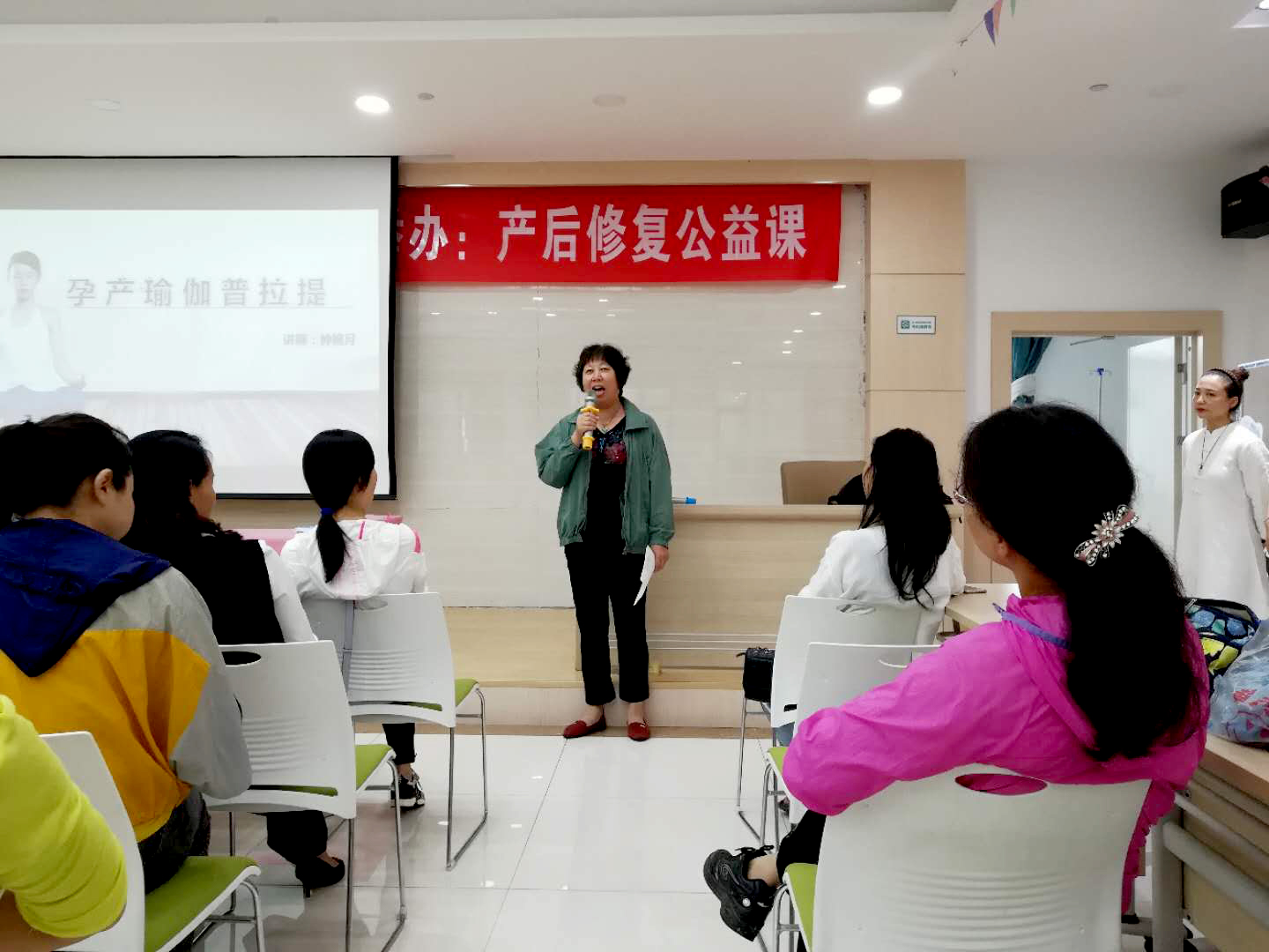 为促进传递产后康复的重要性,6月20日汉中市瑜伽协会 汉中华西妇产医院携手举办:产后修复公益课,在汉中华西妇产医院8楼学术厅举行。此次活动请到了在瑜伽产后康复方面的钟婉月老师、妊娠纹修复方面的覃菂老师以及高级瑜伽导师王威,为我们讲解有关产后瑜伽的知识内容。