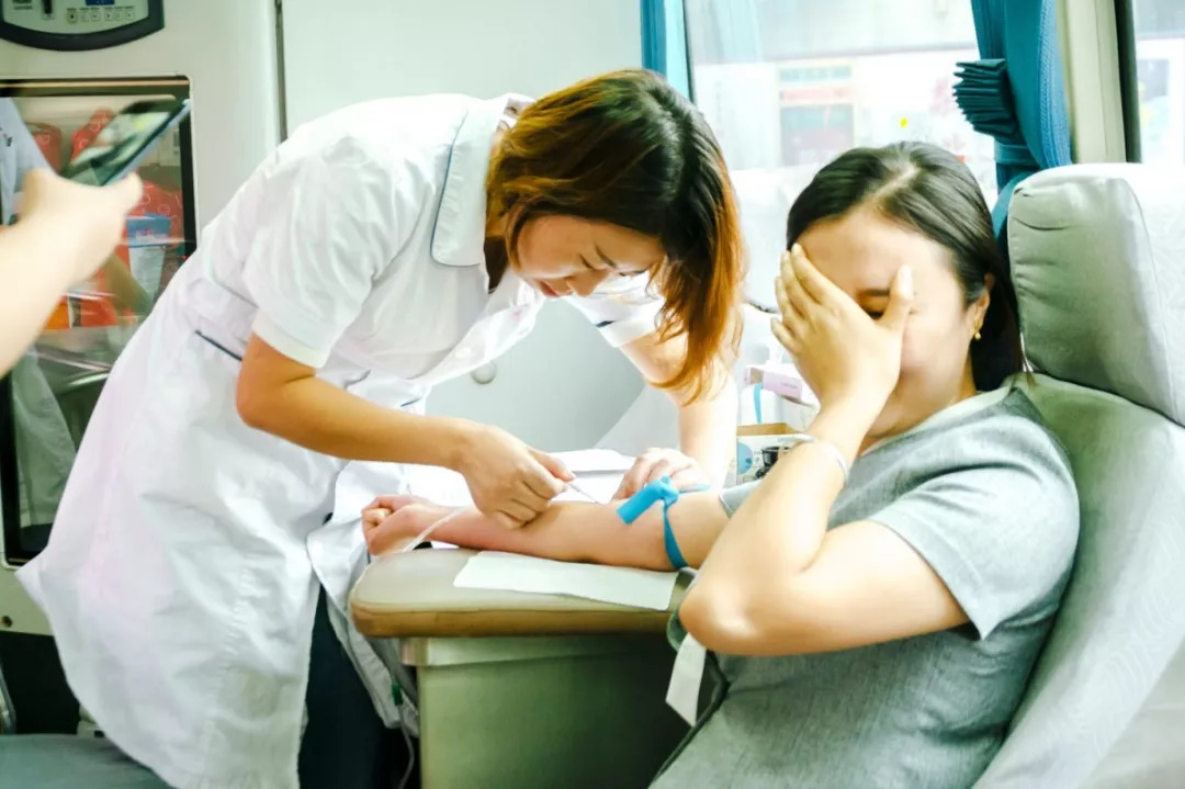 △即使有些晕针,客服小姐姐都要坚持献血