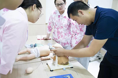培训会上杨主任进行了专业知识授课,并分四组实施新生儿窒息抢救的操作演练。现场气氛活跃,老师对学员提出的疑问一一做了解答,耐心指导,规范了操作手法。