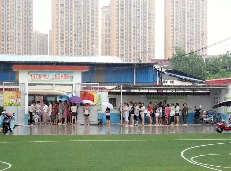 义诊期间,突然下起暴雨,所有医务人员并没有退缩,义诊活动仍在继续,医务人员引导现场等候接受检查的女性在遮雨棚下避雨。
