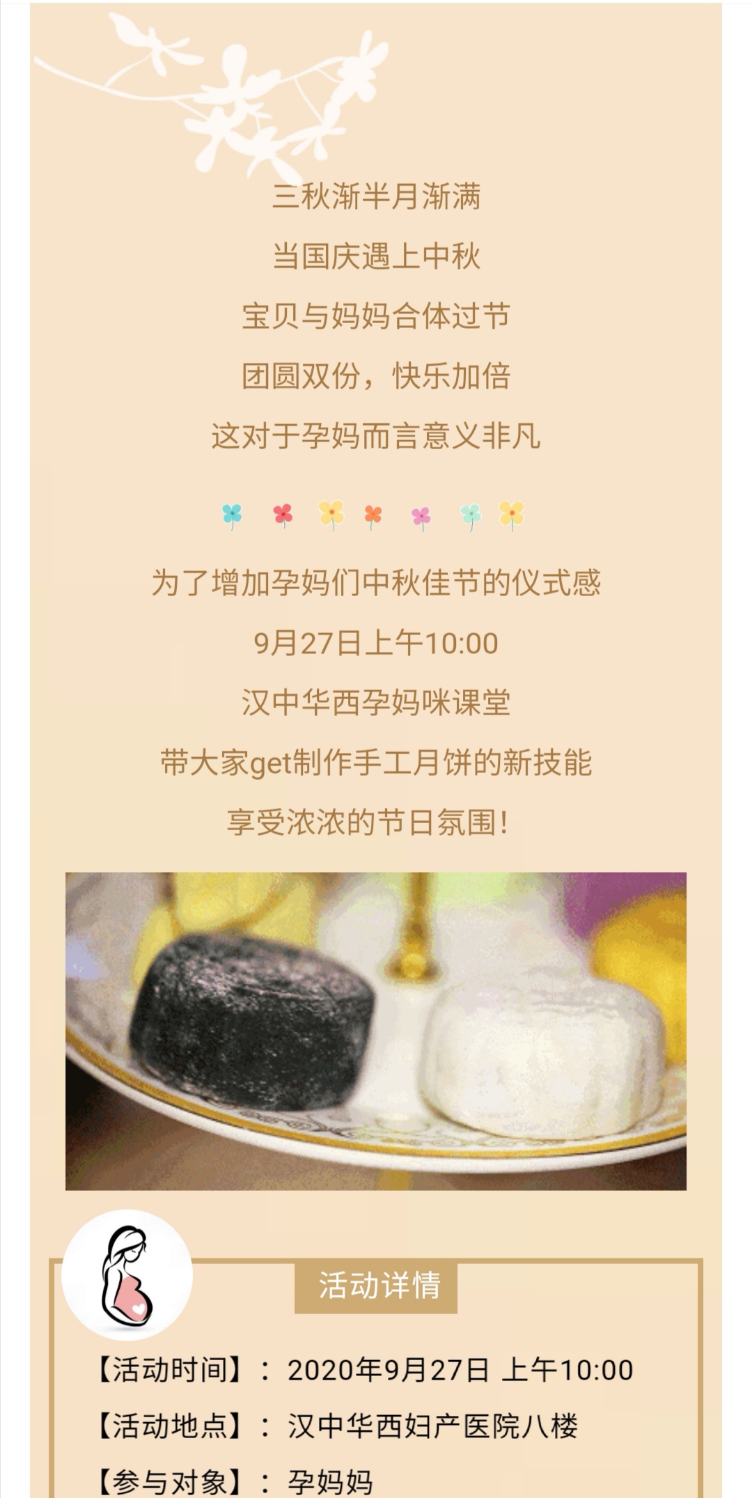 汉中华西妇产医院活动招募|中秋主题孕妈课堂,华西邀您共享甜蜜时光 !