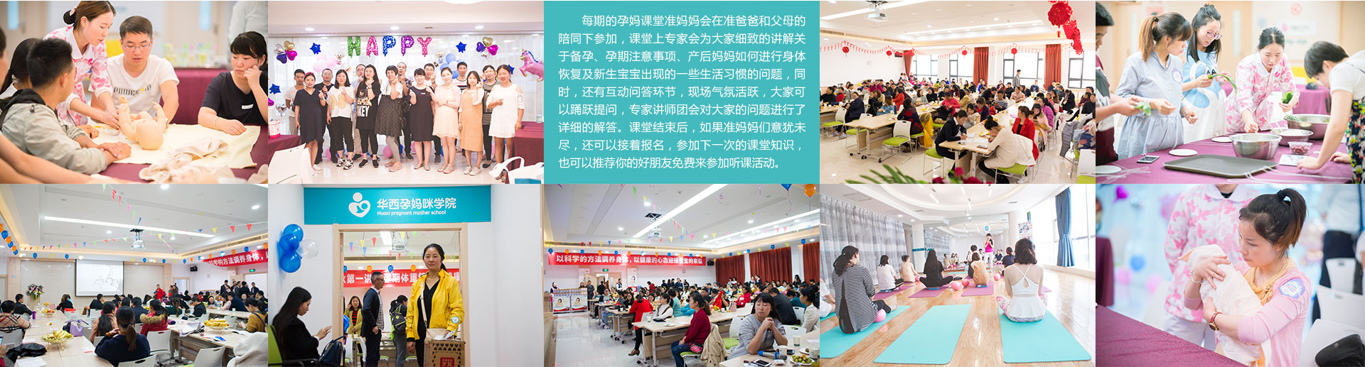 那么来华兴的孕妈课堂吧,这里不仅传授孕期保健知识,还是您与所有快乐准妈妈们分享孕育生命的幸福感觉的温磬场所,在这个课堂里,华兴为大家提供了丰富多彩的活动内容,大家一起喝喝下午茶、聊聊天,不定期举行丰富多彩、趣味横生的活动,充实您的孕期生活。