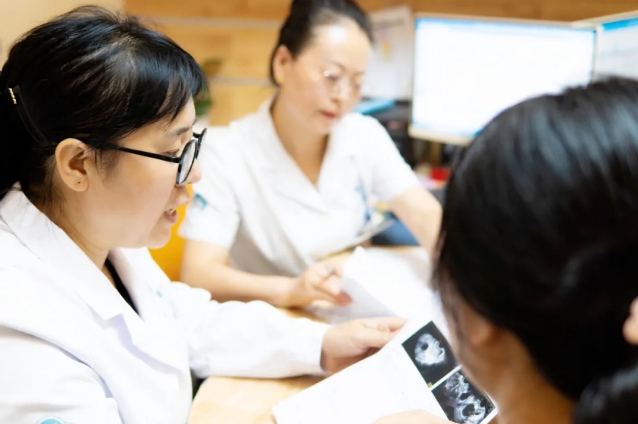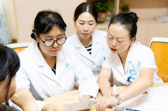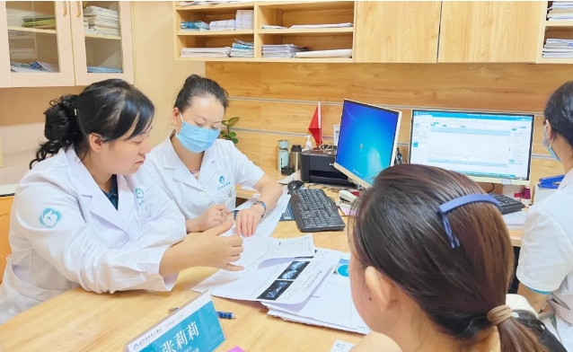 ღ 张莉莉医生正在跟张骐医生共同分析患者病情