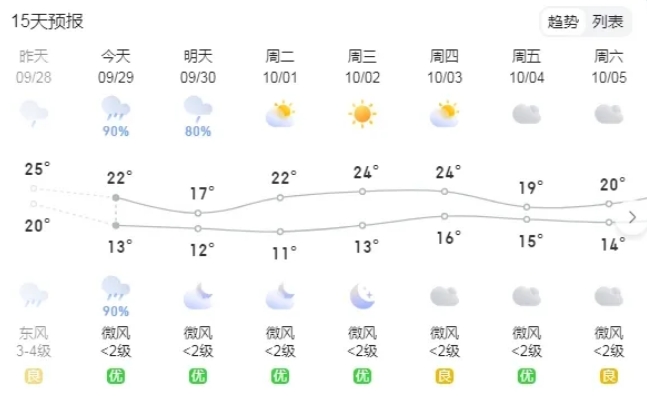 3、汉中国庆期间最高气温24度,最低气温11度,最近天气有雨,请带上雨具,出行请注意安全