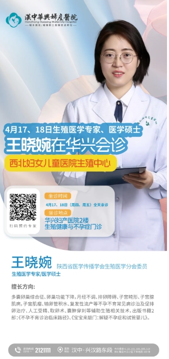 【华兴医讯】4月17、18日,西北妇女儿童医院生殖中心专家王晓婉莅临亲诊,助您圆梦好孕!